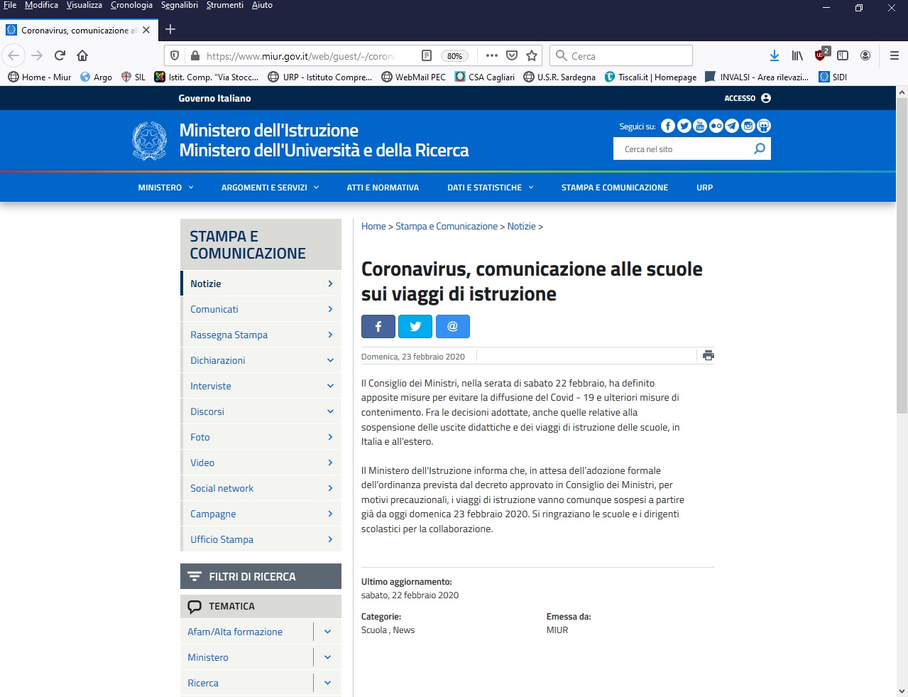 Si informano le famiglie degli alunni che ad integrazione dello sciopero regionale proclamato dall'organizzazione sindacale COBAS Scuola Sardegna, le organizzazioni sindacali CUB SUR, ADL-COBAS, USI-Educazione, SGB-Sindacato Generale di Base hanno proclamato uno sciopero nazionale riguardante il personale docente e ATA del comparto Scuola per l'intera giornata del:
