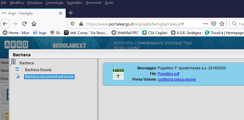 Si comunica che a partire dalla data odierna è visibile l'area del Registro Elettronico: nella sezione "documenti/bacheca/bacheca documenti personali" è disponibile il Pagellino del 1° Quadrimestre in formato pdf; cliccando sull'icona indicata, le famiglie provvederanno personalmente a scaricare e/o stampare i documenti.