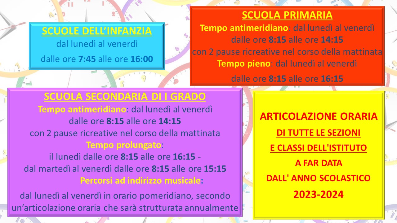 Articolazione oraria dell'Istituto a far data dal prossimo anno scolastico 2023-2024