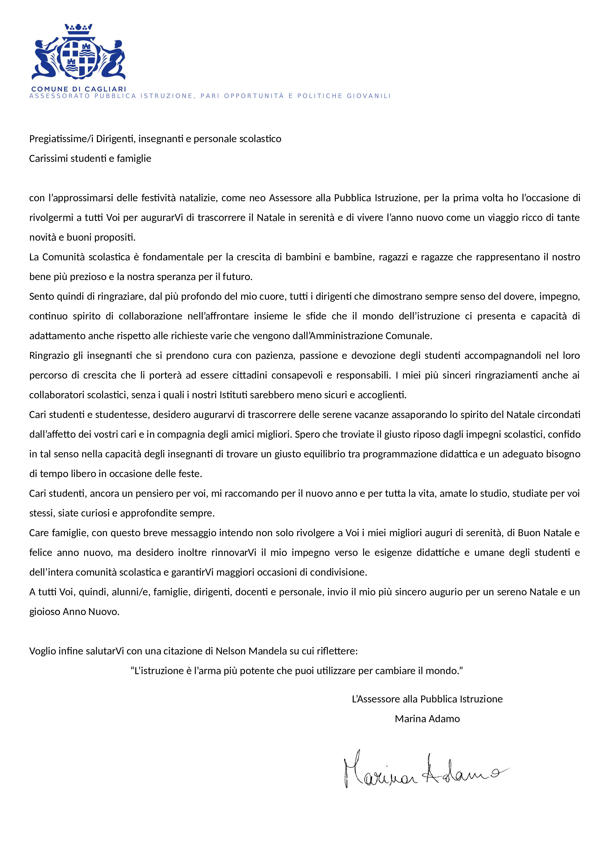 In riferimento all'oggetto, si allega il relativo file.